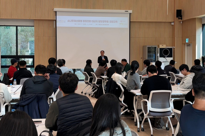 산림청은 이날 전북 진안군 국립진안고원산림치유원에서 40개 시·군·구 담당 공무원 60여 명을 대상으로 소나무재선충병 확산 조기차단을 위한 ‘소나무재선충병 청정전환 대상지 담당공무원 집합교육’을 실시했다.