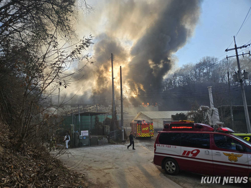 소방본부에 따르면 19일 오후 2시 49분쯤 원주시 지정면 능골고개 인근의 한 돈사가 불에 타고 있다는 신고가 접수됐다. 이후 장비 20여 대와 인력 40여 명을 투입해 1시간여 만인 15시 46분에 진화됐다.