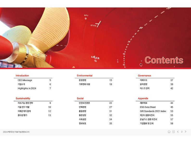 케이조선 관계자는 "지속가능경영보고서를 통해 투명한 경영과 ESG 가치를 꾸준히 실천하며 이해관계자와 함께 성장하겠다"고 말했다.