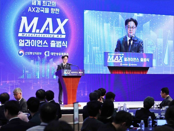 김정관 산업부 장관은 “제조 AX는 기업 생존과 직결된 문제라는 절박한 인식이 반영된 것”이라며 “2030년 제조 AX 1등 국가로 도약하겠다”고 말했다.