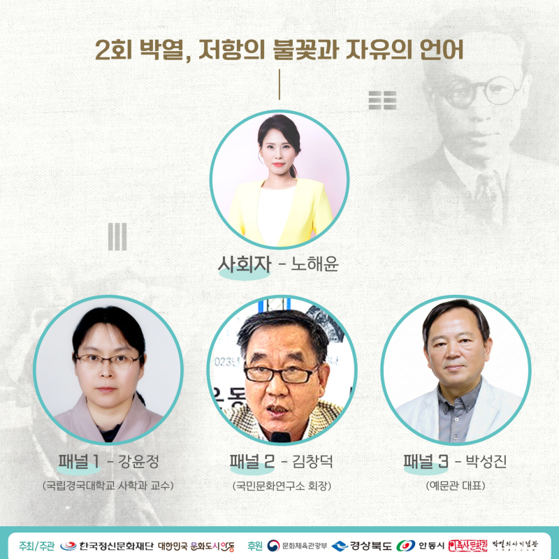 ‘박열, 저항의 불꽃과 자유의 언어’를 주 내용으로 진행되는 토크콘서트에는 국립경국대학교 사학과 강윤정 교수, 국민문화연구소 김창덕 회장, 예문관 박성진 대표가 패널로 참여한다.