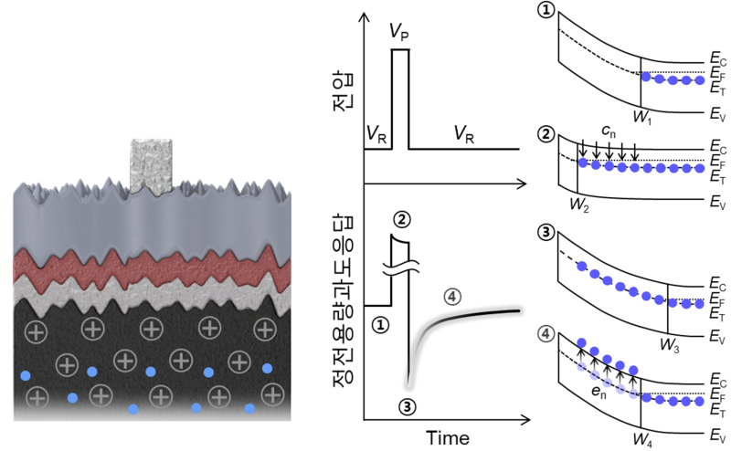 기존 결함분석법인 심층준위과도분광(DLTS)은 태양전지에 순간적인 전압을 가해 일시적으로 성질이 변한 상태로 만들고, 소자가 정상으로 돌아올 때까지의 과도응답을 측정해 분석한다.