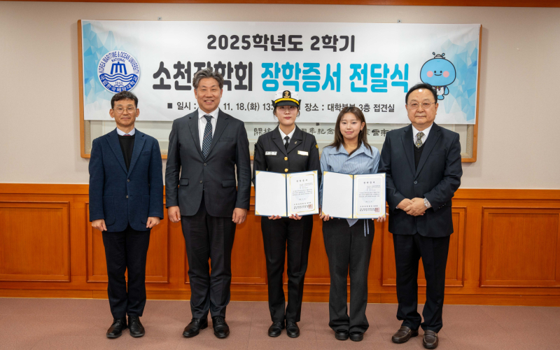 국립한국해양대학교는 대학본부에서 소천장학회 장학증서 전달식을 열었다고 20일 밝혔다.