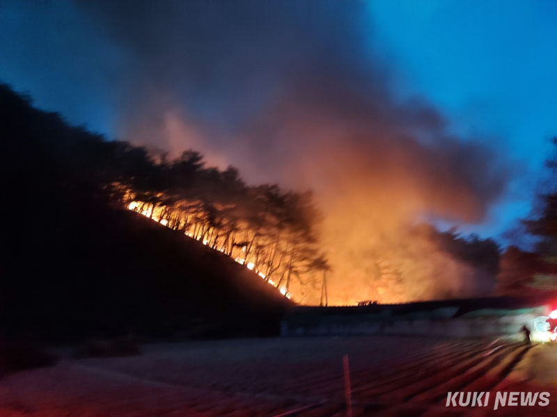 산불은 21일 0시 20분 기준 41%의 진화율 41%를 보이고 있으며, 산림 당국은 날이 밝는 대로 진화 작업에 헬기를 투입할 예정이다.