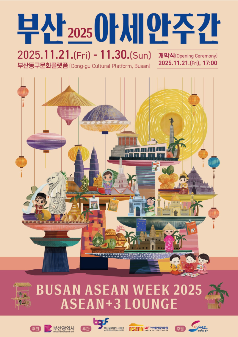 행사는 시가 주최하고 부산글로벌도시재단과 KF아세안문화원이 공동 주관한다.