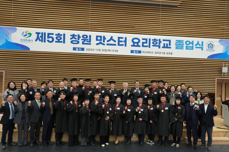 마산대학교는 20일 송원홀에서 ‘제5회 창원 맛스터(Master) 요리학교’ 졸업식을 열고 외식업 경영자 19명의 졸업을 축하했다.