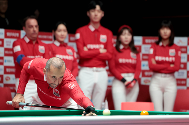 ‘미스터 매직’ 세미 사이그너(튀르키예)가 맹활약했다. 사이그너는 1세트(남자복식)에서 한지승과 합을 맞춰 1이닝째 퍼펙트큐(한 이닝 모든 득점 성공)를 달성, 11:1로 에디 레펀스(벨기에)-조건휘를 제쳤다.