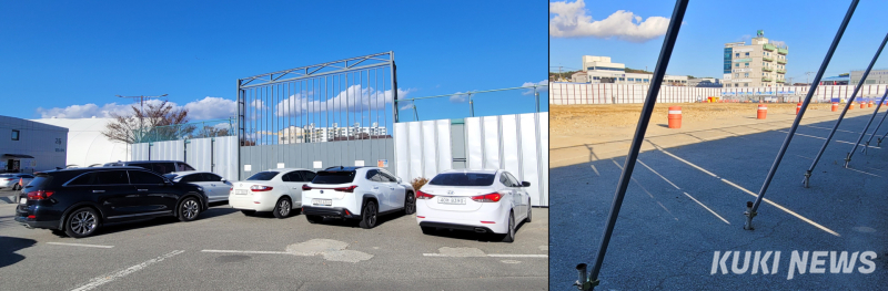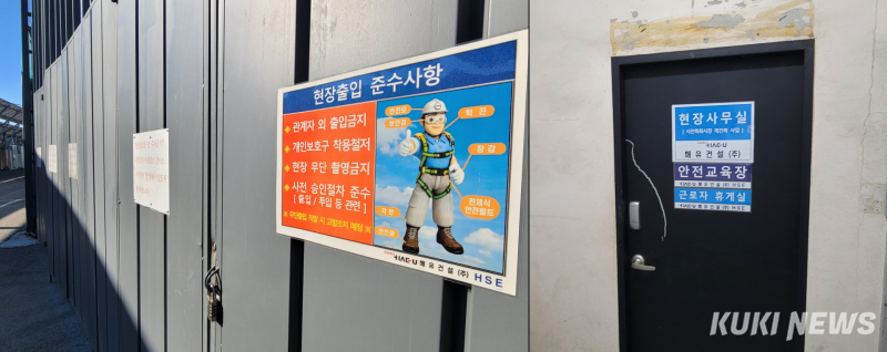 지난 21일 들른 공사 현장은 터고르기만 겨우 된 상태이고, 현장사무실도 문이 닫혀 있었다.
