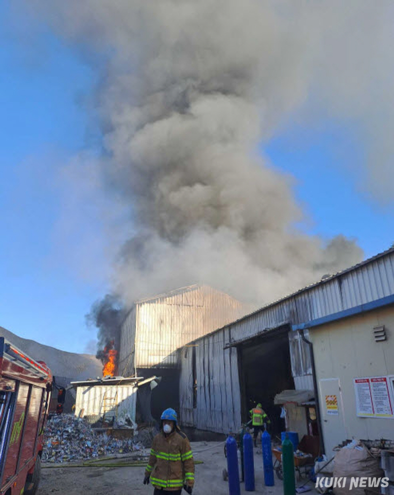 소방 당국에 따르면 이날 22일 오전 9시 16분께 강릉시 강동면 국도 7호선 인근 폐기물 처리장에서 원인을 알 수 없는 불이 났다.
