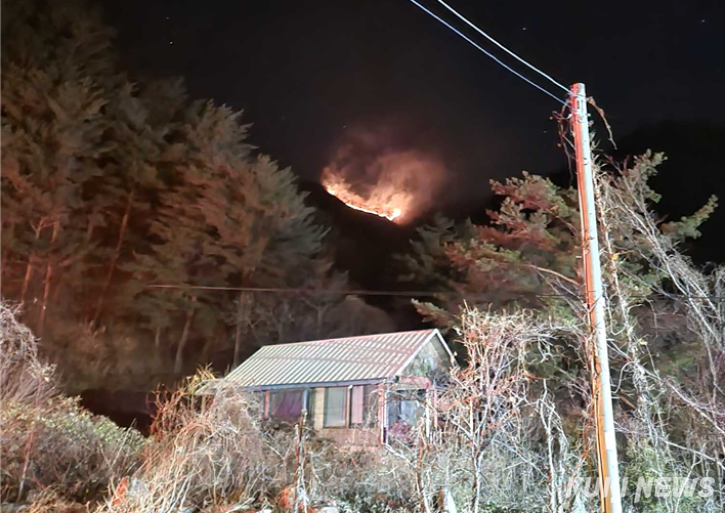 하지만 일몰로 헬기 투입이 불가하고, 산 정상 부근에서 시작된 불길이 민가가 있는 아래로 번졌다.