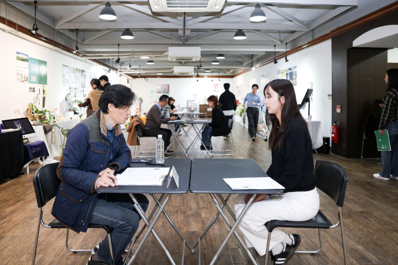 참가 학생들은 자신이 준비한 졸업 작품을 직접 소개하고, 이력서·자기소개서를 바탕으로 기업 관계자와 1대1 맞춤형 모의 면접을 경험했다.
