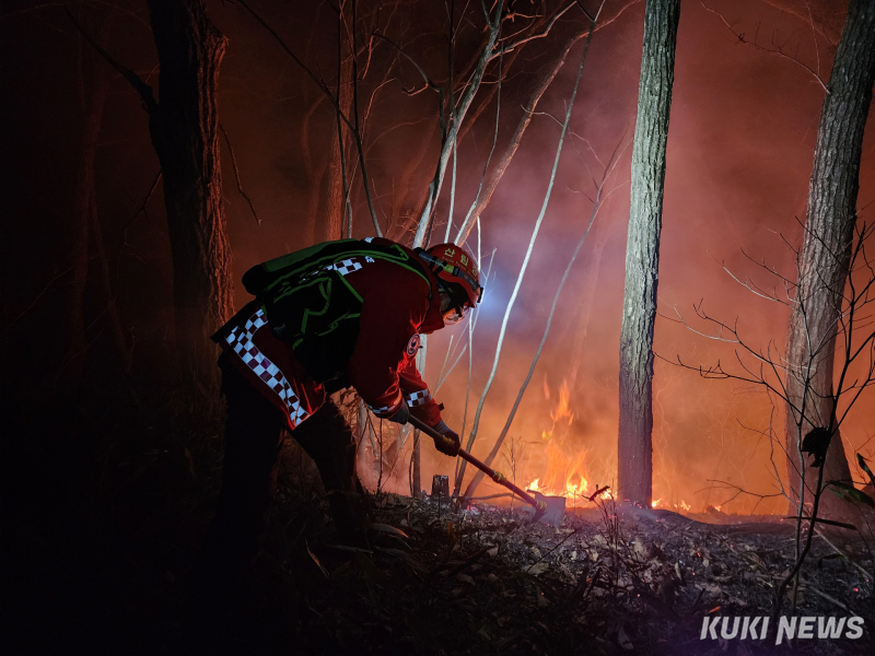강원특별자치도산불방지대책본부에 따르면 일출과 함께 진화헬기 26대와 인력 409명, 장비 116대를 투입 진화에 나서 주불을 잡고 잔불 정리에 들어갔다.