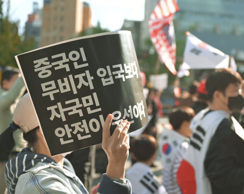 집회에 참석한 대학생 김상훈씨(25·가명)는 “중국인이 대거 들어오면 범죄가 늘고 한국 사회가 위험해질 것”이라며 “단순한 감정적 반감이 아니라 안전을 지키려는 조치”라고 주장했다. 그는 ‘중국인 유입 증가는 곧 치안·일자리·복지 악화’라는 논리를 내세우며, “국가의 자유민주주의 체제에도 위협이 될 수 있다”고 말했다.