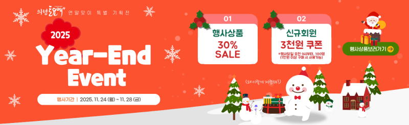 의령군은 오는 24일부터 군 공식 온라인 쇼핑몰 ‘토요애’에서 ‘2025 연말맞이 특별기획전 할인행사’를 연다.