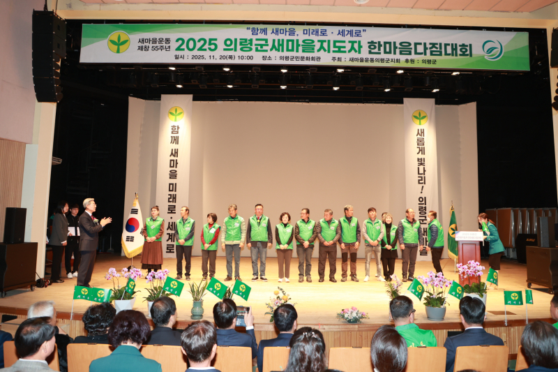 새마을운동 의령군지회는 20일 군민문화회관에서 ‘2025 새마을지도자 한마음 다짐대회’를 열고 한 해 동안 지역사회 발전과 봉사활동에 헌신한 새마을지도자들을 격려했다.