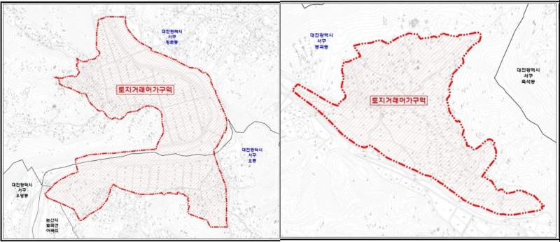 대전시는 서구 ‘오동지구 일반산업단지’와 ‘봉곡지구 일반산업단지’ 2곳의 사업구역 1.16㎢에 대하여 24일부터 2028년 11월 23일까지 3년간 토지거래허가구역으로 지정한다고 밝혔다.