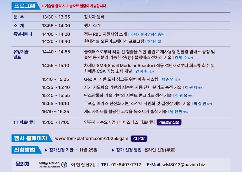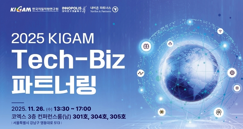 KIGAM은 오는 26일 서울 코엑스 컨퍼런스룸에서 ‘2025 KIGAM Tech-Biz 파트너링’을 개최한다.