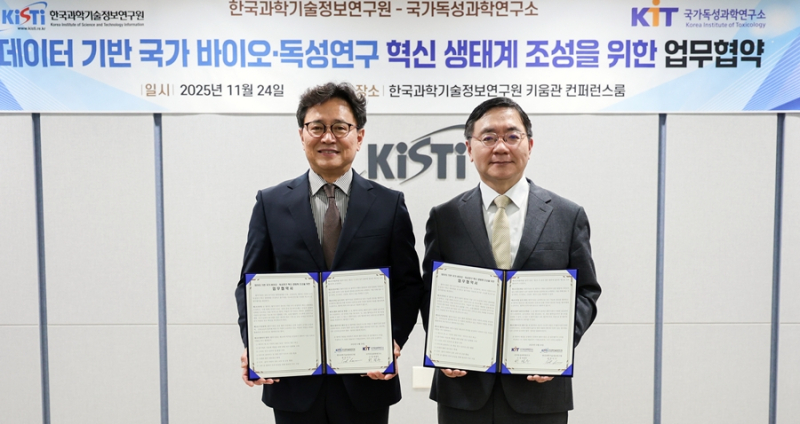 이식 KISTI 원장은 “KISTI의 AI·HPC·데이터 역량이 KIT의 독성연구 전문성과 결합되면 국가 독성연구 생태계의 혁신적 전환을 이끌 수 있을 것”이라며 “줄기세포 치료제 연구 플랫폼 구축을 통해 국가 바이오헬스 연구 경쟁력 강화에 적극 기여하겠다”고 밝혔다.