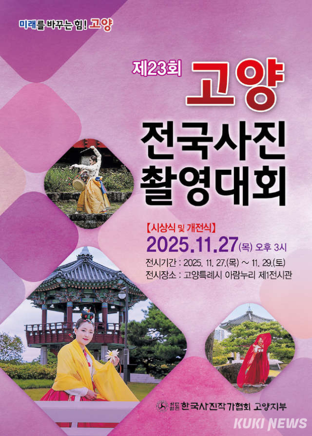 시 관계자는 “고양전국사진촬영대회는 매년 전국 사진가들이 고양의 자연과 도시 풍경을 새롭게 조명하는 의미 있는 행사”라며 “이번 전시를 통해 시민들이 사진예술을 가까이에서 즐기고, 고양의 매력을 다시 발견하는 시간이 되길 바란다”고 말했다.