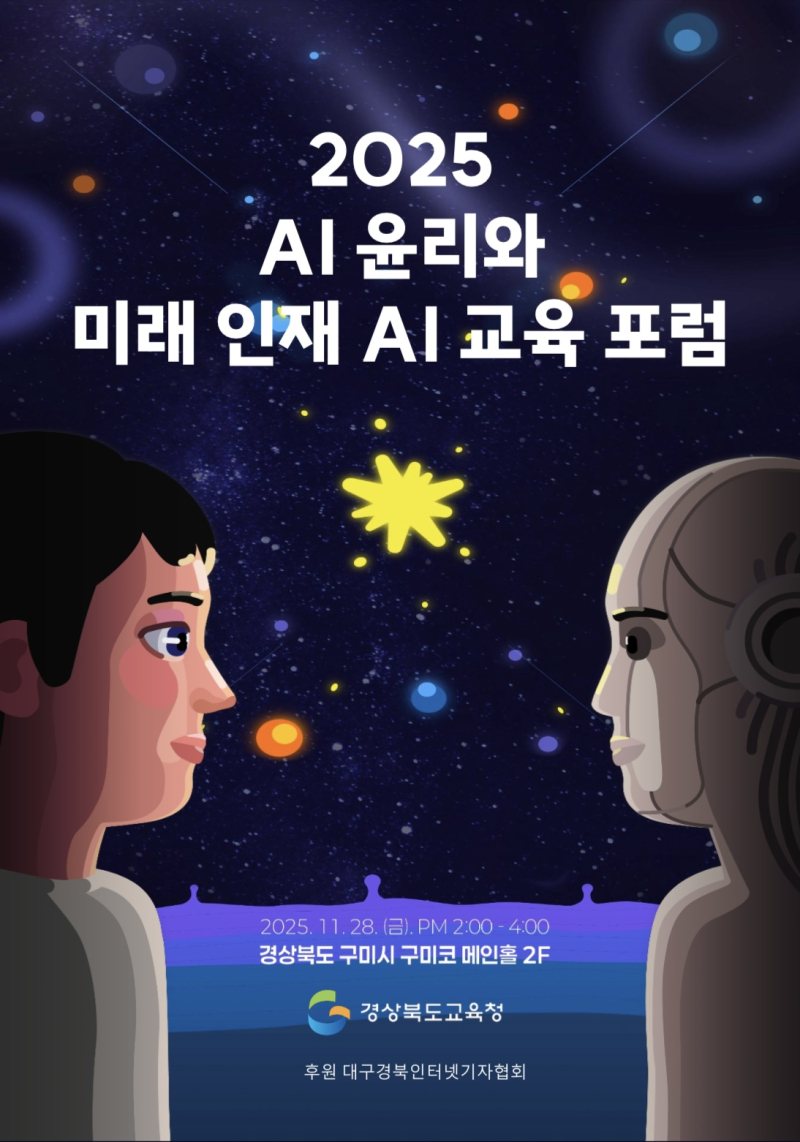 25일 경북교육청에 따르면 오는 28일 구미코 메인홀에서 ‘2025년 경북 AI 교육 윤리와 미래 인재 AI 교육 포럼’을 개최한다.