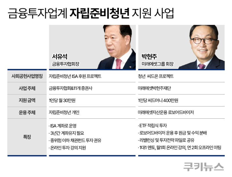한편 국내 1위 증권사이자 서유석 금투협 회장이 오랜 기간 몸담았던 미래에셋증권은 이번 프로젝트에 참여하지 않았다. 이미 미래에셋박현주재단의 ‘청년 씨드온 프로젝트’를 통해 지원하고 있기 때문이다.