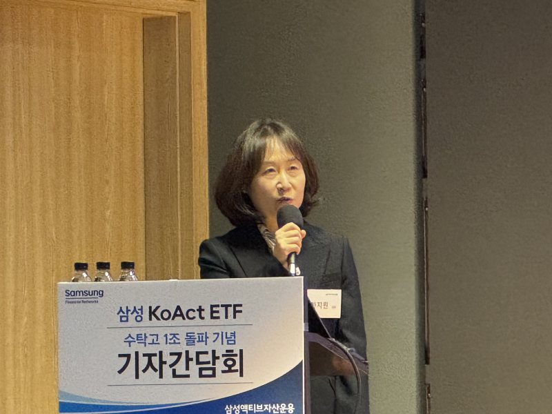하지원 삼성액티브자산운용 대표는 25일 서울 여의도에서 ‘순자산 1조원 돌파 기념 간담회’를 열고 “주식형 액티브 상장지수펀드(ETF)만으로 2년4개월 만에 AUM 1조원을 돌파했다”며 이같이 말했다. 이날 하 대표를 비롯해 서범진 ETF솔루션본부장, 김지운 운용2본부장 등이 발언에 나섰다.