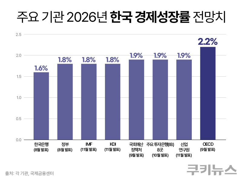 여기에 경제협력개발기구(OECD)와 금융연구원은은 내녕 성장률 전망치를 각각 2.2%와 2.1%로 제시했다.