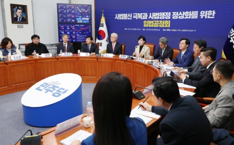 이날 민주당 사법불신 극복·사법행정 정상화 태스크포스(TF)는 국회에서 입법공청회를 열고 사법행정권 남용 논란을 해소하고 사법 신뢰를 회복하겠다며 개혁안을 밝혔다. 전현희 TF 단장은 “제왕적 권한이 대법원장에게 집중된 구조를 분산해 국민을 위한 사법부로 바로 세우겠다”고 강조했다.