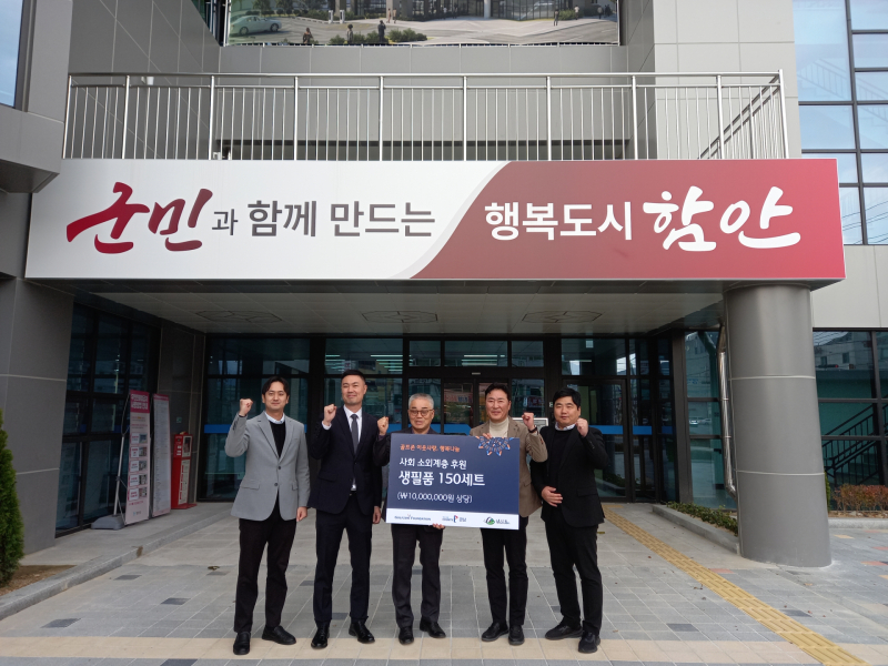 골프존 카운티 경남(이사장 김영찬)이 25일 지역의 어려운 이웃을 돕기 위해 칠원읍사무소에 생필품 150상자(약 1000만원 상당)를 기탁했다.