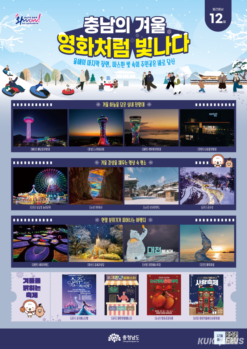 도 관계자는 “영화처럼 빛나는 충남의 겨울 속에서 연말의 주인공이 돼 보시길 바란다”라며 지역 관광 명소에 많은 방문을 부탁했다.