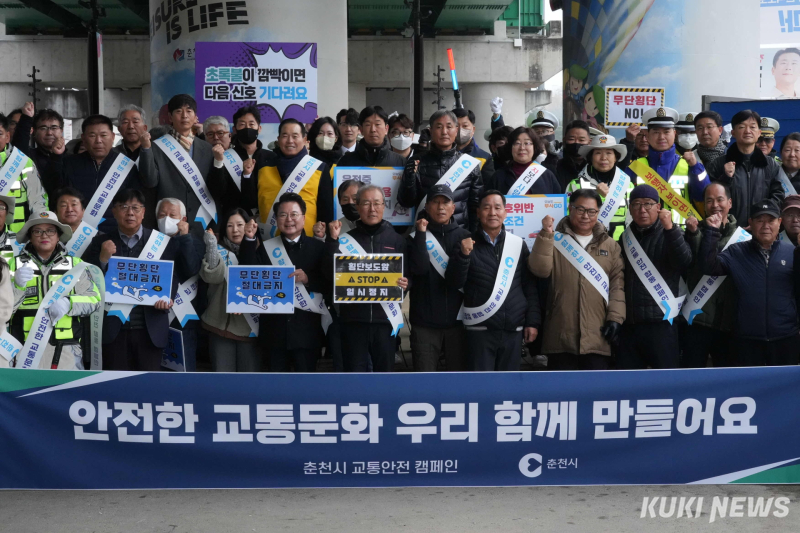 육동한 춘천시장과 강연술 춘천시민버스 대표, 자율방범연합대, 모범운전자연합회 등 80여 명이 함께한 캠페인에서는 '횡단보도 일단정지', '보행자 무단횡단 금지'를 알리는 피켓과 안내문을 활용해 시민들에게 교통안전 메시지를 전달했다.