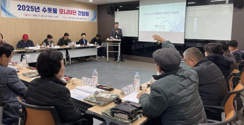 양산시 상하수도사업소는 26일 양산비즈니스센터에서 2025년 수돗물 모니터단 간담회를 개최하고 수돗물 관련 주요 현안과 정수장 수질관리 체계 및 운영 현황을 설명했다고 밝혔다.