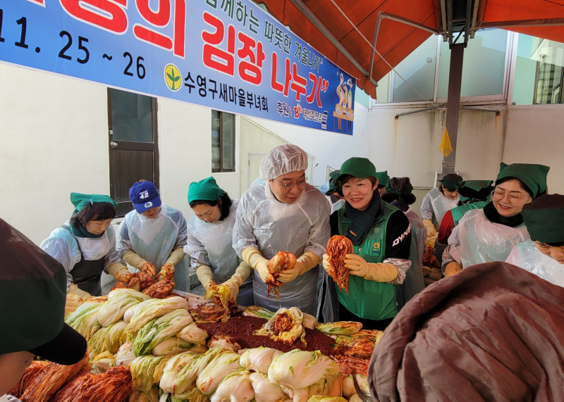27일 정 의원실에 따르면 정 의원은 지난해 수영구 새마을부녀회와 함께 1000여 포기의 김장을 담그는 봉사활동에 참여했다.
