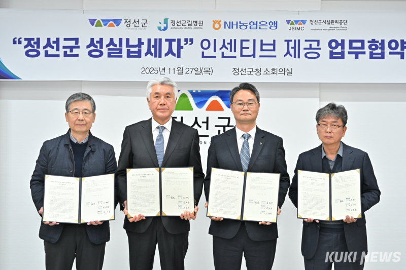 강원 정선군은 27일 군청에서 정선군립병원, NH농협은행 정선군지부, 정선군시설관리공단과 ‘정선군 성실납세자 지원 업무협약’을 체결했다.