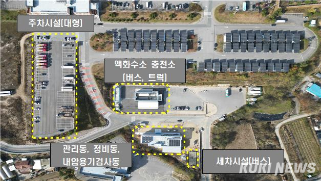 이곳에서는 하루 최대 100대의 수소 버스·트럭 충전이 가능한 2000㎏ 규모의 액화수소 충전소 4대와 정비, 세차, 내압용기 검사, 화물차 주차장 확장 등 수소차 운행에 필요한 기능이 모두 갖춰져 있다. 운영은 지난 7월부터 상업운전을 시작했고, 다음달 2일 준공식이 개최된다.