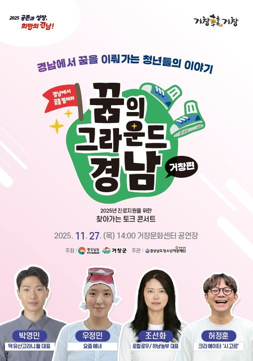 구인모 거창군수는 “이번 토크 콘서트가 청소년들이 자신의 가능성을 발견하고 미래를 향해 나아가는 출발점이 되길 바란다”며 “경남 청년들의 진솔한 이야기가 학생들에게 새로운 꿈과 용기를 심어주길 기대한다”고 말했다.