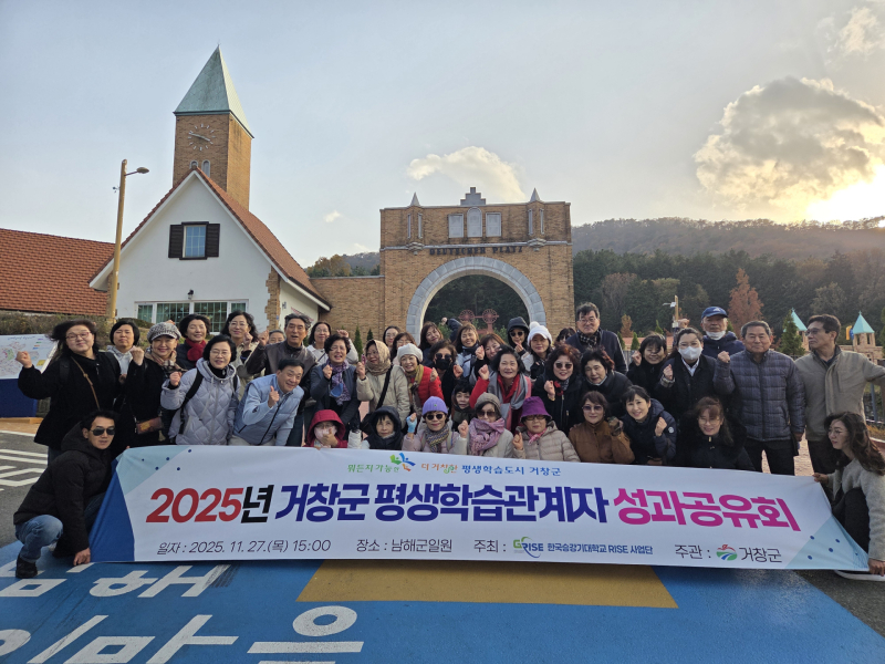 거창군은 지난 27일 남해군 일원에서 기관·단체 담당자, 평생학습활동가, 우수프로그램 동아리 담당자, 평생학습실무위원회, 강사 등 73명이 참여한 가운데 ‘2025년 거창군 평생학습관계자 성과공유회’를 개최했다.