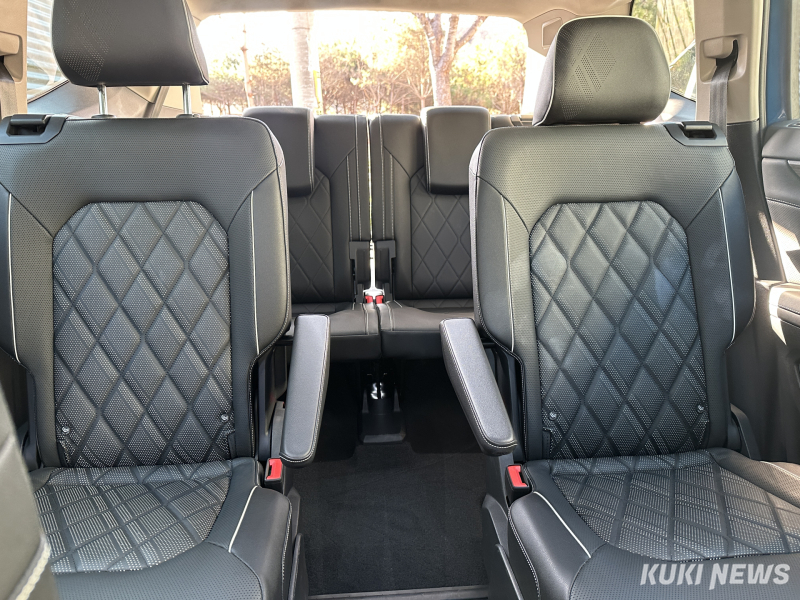 실내는 ‘가족을 위한 공간’이라는 콘셉트가 명확하다. 아틀라스는 ‘2+3+2’ 구성의 7인승과 ‘2+2+2’ 구성의 6인승 등 두 가지 시트 타입을 제공하고 있다. 7인승 모델은 2열 60:40 폴딩 벤치 시트를 갖춰 다수의 가족 구성원도 편리하게 탑승할 수 있고, 6인승 모델은 2열 캡틴 시트가 안락한 착좌감을 제공한다. 또한 2열과 3열 시트 모두 폴딩이 가능하며, 트렁크 용량은 기본 583ℓ에서 2열 폴딩 시 2735ℓ까지 확대돼 캠핑 장비와 레저 용품을 넉넉히 싣기에도 충분하다.