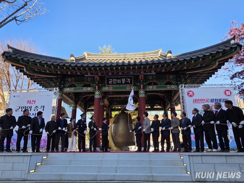 화천군은 1일 군청 청사 내에 마련된 공간에서 ‘화천군민의 종각’준공식을 개최했다. 군청 정문 옆에 자리잡은 군민의 종은 2023년 착공 이후 약 2년 만에 베일을 벗었다.