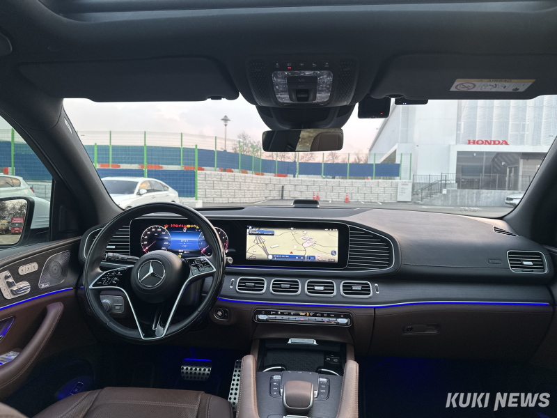 실내에 들어서자 ‘SUV의 S클래스’라는 별칭이 과장이 아니라는 것을 바로 느낄 수 있었다. 고급 가죽과 우드 소재가 조화를 이룬 스티어링 휠, 전 좌석 전동 조절 기능, 3열까지 확보된 여유로운 공간이 어우러져 편안하고 품격 있는 분위기를 만들어냈다.