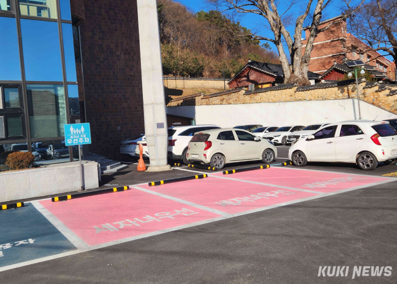 홍천군청 본관 입구 인근 주차면 3면을 확보한 '세 자녀 가구 전용 주차구역'은 영유아를 동반한 가구와 세 자녀 이상 가구가 더 편리하게 청사를 이용할 수 있도록 돕기 위함이다.
