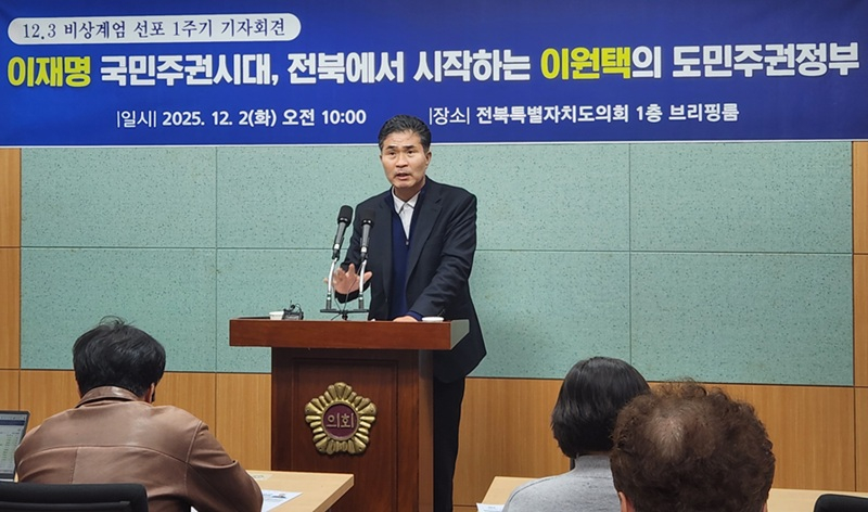 이 의원은 2일 전북특별자치도의회에서 기자회견을 열고 “1년 전 국가적 위기 속에서 민주주의를 지키는 마지막 울타리는 ‘권력’이 아니라 ‘국민’이라는 것을 다시 한 번 확인했다”고 평가했다.