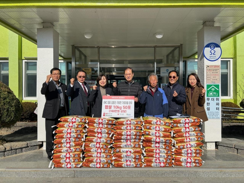 합천군 가회면 가호마을 출신 향우인 ENC 김종진 대표가 1일 가회면사무소를 방문해 쌀 10kg 50포를 기탁했다.