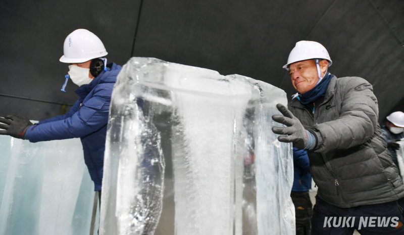 얼음조각 1개의 무게만 135㎏에 달한다.