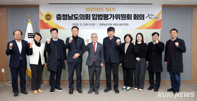 충남도의회는 2일 의회 세미나실에서 ‘2025년도 제4차 충청남도의회 입법평가위원회 회의’를 개최했다. 충남도의회는 2일 의회 세미나실에서 ‘2025년도 제4차 충청남도의회 입법평가위원회 회의’를 열고, 입법평가 연구용역 최종 보고와 함께 향후 조례 개선 방향, ‘지방의회법’ 등 자치분권 법제 개선 방향 등을 공유했다.
