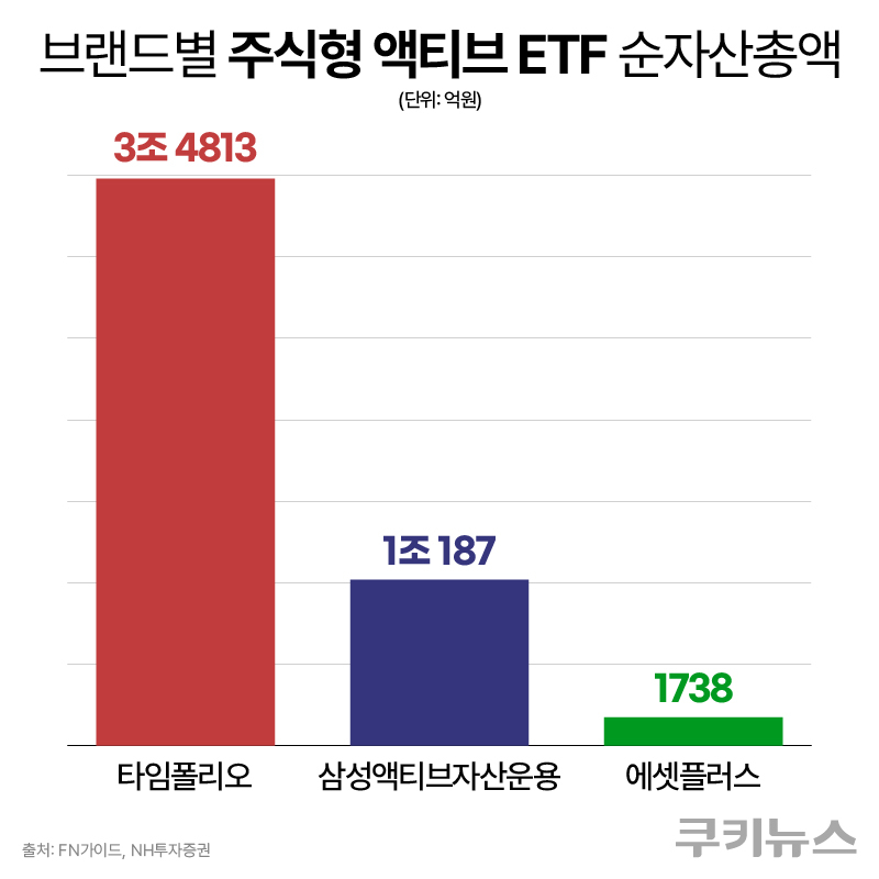 액티브 ETF 시장의 활성화에 힘입어 액티브 전문 운용사들의 존재감도 커지고 있다. 특히 타임폴리오자산운용(TIMEFOLIO)은 주식형 액티브 ETF 분야에서 독보적인 위치를 구축했다. 타임폴리오의 주식형 액티브 ETF 순자산총액 규모는 이미 3조5000억원을 넘어섰다. 삼성액티브자산운용(KoAct) 역시 AUM이 1조원 수준으로 불어났다.
