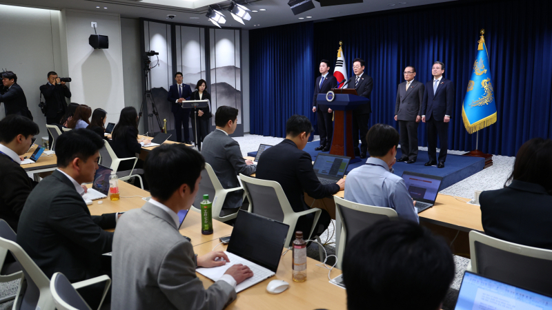 이재명 대통령이 12·3 비상계엄 사태 1주년인 3일 용산 대통령실에서 ‘빛의 혁명 1주년 대국민 특별성명’을 발표하고 있다. 왼쪽부터 강훈식 대통령비서실장, 이 대통령, 위성락 국가안보실장, 김용범 정책실장. 비상계엄 1년을 맞은 3일 서울역 대합실에서 시민들이 이재명 대통령의 ‘빛의 혁명 1주년, 대국민 특별성명’ 발표를 방송으로 지켜보고 있다.이재명 대통령이 12·3 비상계엄 사태 1주년인 3일 서울 용산 대통령실에서 '빛의 혁명 1주년 대국민 특별성명'을 발표한 뒤 취재진 질문에 답하고 있다.