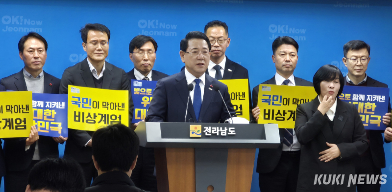 김영록 전남지사는 이날 오후 전남도청 브리핑룸에서 ‘12·3 불법 비상계엄 저지 1주년’ 대도민 성명을 통해 “12·3의 기억을 헌법과 법률에 새기는 개혁으로 대한민국의 미래를 바꾸겠다”고 강조했다.