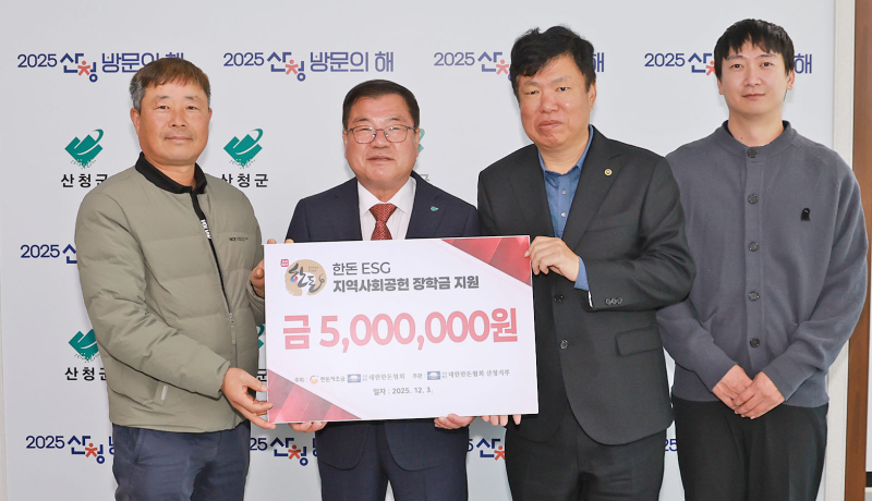 산청군은 지난 3일 대한한돈협회 산청지부가 군청을 방문해 지역 인재 육성을 위한 향토장학금 500만원을 기탁했다.