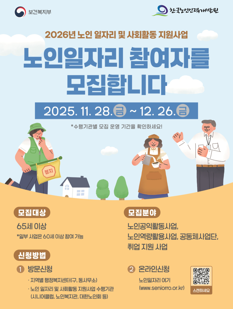 참여자 모집은 의성시니어클럽과 대한노인회 의성군지회가 위탁 수행기관으로 담당하며, 각 읍·면사무소 및 읍·면 분회경로당 순회 방문을 통해 접수를 받는다. 선발은 관련 기준에 따른 고득점자 순으로 이뤄진다.